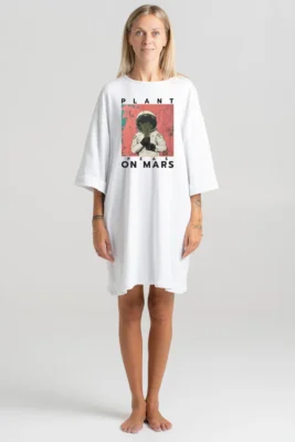 Laisvi, tiesaus kirpimo marškinėliai puikiai derantys su šiuolaikišku miesto stiliumi. Išskirtinis jų akcentas – unikalus piešinys, perteikiantis savitą idėją. Marškiniai su trumpomis rankovėmis pasižymi patogiu, laisvu siluetu, kuris užtikrins komfortą ir leis jaustis puikiai visą dieną. 🙂