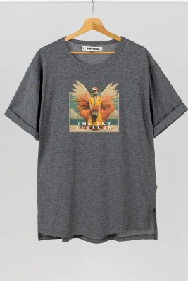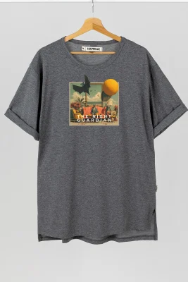 - Dizainas: Laisvo, tiesaus kirpimo marškinėliai su trumpomis rankovėmis ir skeltukais šonuose. Nugara šiek tiek pailginta, rankovių kraštai tvarkingai apsiūti. Išskirtinė spauda suteikia modeliui savitumo.