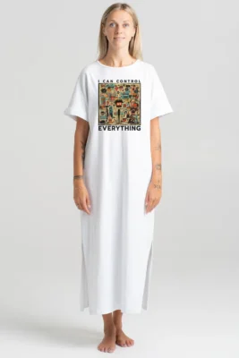 Trumpa, lengva ir elegantiška suknelė puikiai tinka kasdienai. Pagrindinis šios suknelės akcentas – išskirtinis piešinys, suteikiantis unikalumo ir traukiantis dėmesį. Suknelė užtikrina lengvumą, judesių laisvę ir komfortą visą dieną. Laisvas siluetas ir plačios, 3/4 ilgio rankovės suteikia subtilios kasdienės elegancijos pojūtį, o praktiškos šoninės kišenės prideda papildomo funkcionalumo. Pagaminta iš aukštos kokybės minkštos medvilnės ir elastano mišinio.