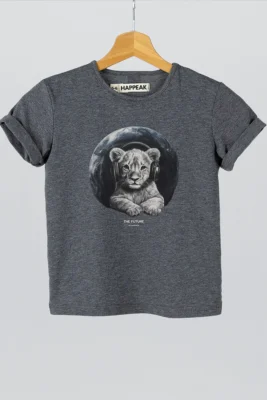 A warm and loose sweatshirt that feels like a cozy hug. The simple, functional, and modern design makes it perfect for school and outdoor play, offering freedom of movement. It doesn’t have a hood or pockets, but it is still practical and comfortable. This versatile sweatshirt is suitable for both girls and boys. The main highlight is the “The Future” print, featuring a small lion with headphones against the moon, symbolizing the future, courage, and independence.