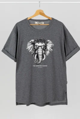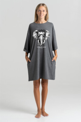 The “Wisdom Keeper” dress reflects a relaxed city style and features elegant side slits. A distinctive elephant print adds a touch of charm and subtle beauty. This artwork can be seen as a symbol of inner strength, wisdom, and playfulness. The dress is long, with a straight and loose fit, short sleeves, side slits, and practical pockets. Its minimalist design offers functionality and makes it easy to pair with other clothing. Made from soft, high-quality fabric, this dress ensures comfort for any occasion—whether strolling through the city or enjoying a cozy evening with friends.