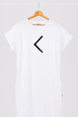 This short and lightweight dress is designed to keep you comfortable every day. Its relaxed silhouette, wide 3/4-length sleeves, and practical side pockets combine comfort with effortless style. A minimalist print featuring the Kenaz rune adds a unique touch, symbolizing a torch, knowledge, and creativity. Kenaz represents inner light, learning, and insight that inspire personal growth. This powerful symbol encourages you to unlock your potential, nurture your creativity, and shine in your uniqueness.