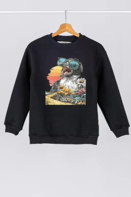 - Design: A loose, universal, straight-cut sweatshirt with long sleeves and dropped shoulders. Suitable for men and women. It features an eye-catching print.