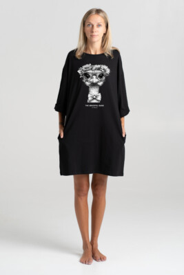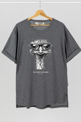 Loose, straight-cut t-shirts that fit perfectly with a modern urban style. The eye-catching detail is the ostrich print, adorned with a floral crown, stylish glasses, and an elegant bow. The design symbolizes a journey through life with wisdom, playfulness, and subtle charm. The t-shirt, with short sleeves, boasts a comfortable, loose silhouette that ensures a relaxed fit and keeps you feeling great all day long. 🙂