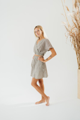 Modelis yra 1,72m ūgio ir dėvi XS dydį.